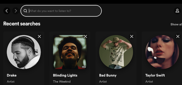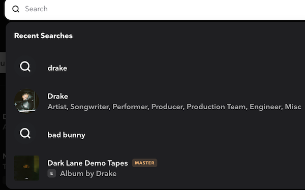Sin embargo, las búsquedas recientes de Spotify no se actualizan a tiempo.