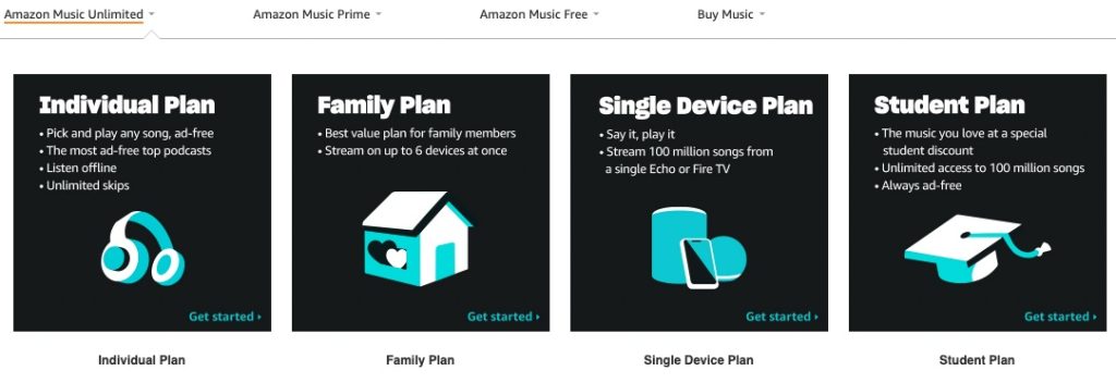Amazon Music Unlimited ofrece cuatro opciones de plan distintas:
