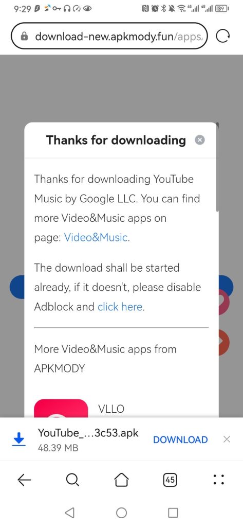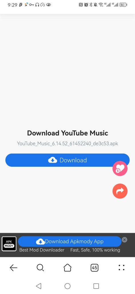 Haz clic en el botón de descarga de abajo para descargar YouTube Music MOD APK en tu dispositivo Android e instalarlo.