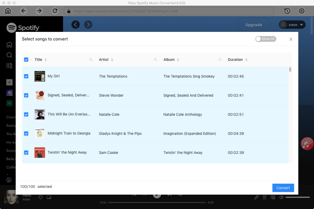 最良の代替案はPazu Spotify Converterで、Spotifyウェブプレーヤーを内蔵しています。SpotifyからMP3への変換ツールの中で、任意の曲、アルバム、プレイリストを素早く選択できます。