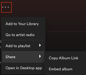 プレイリストやアルバムを開き、…アイコンをタップ – 共有 – リンクをコピー