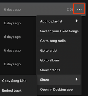 曲の場合、曲の右にある…をタップ – 共有 – リンクをコピー