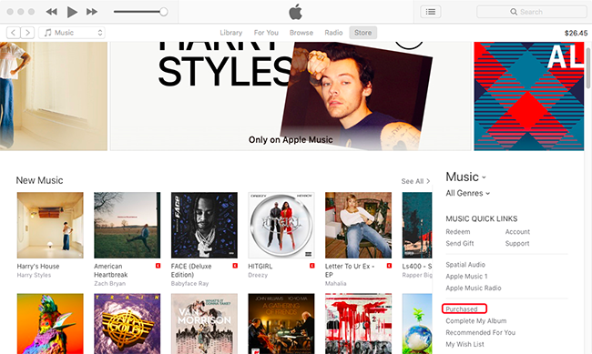 iTunes Storeで購入した曲はDRMフリーのM4A形式です。iTunes、Music、VLCなどで再生することができます。–>