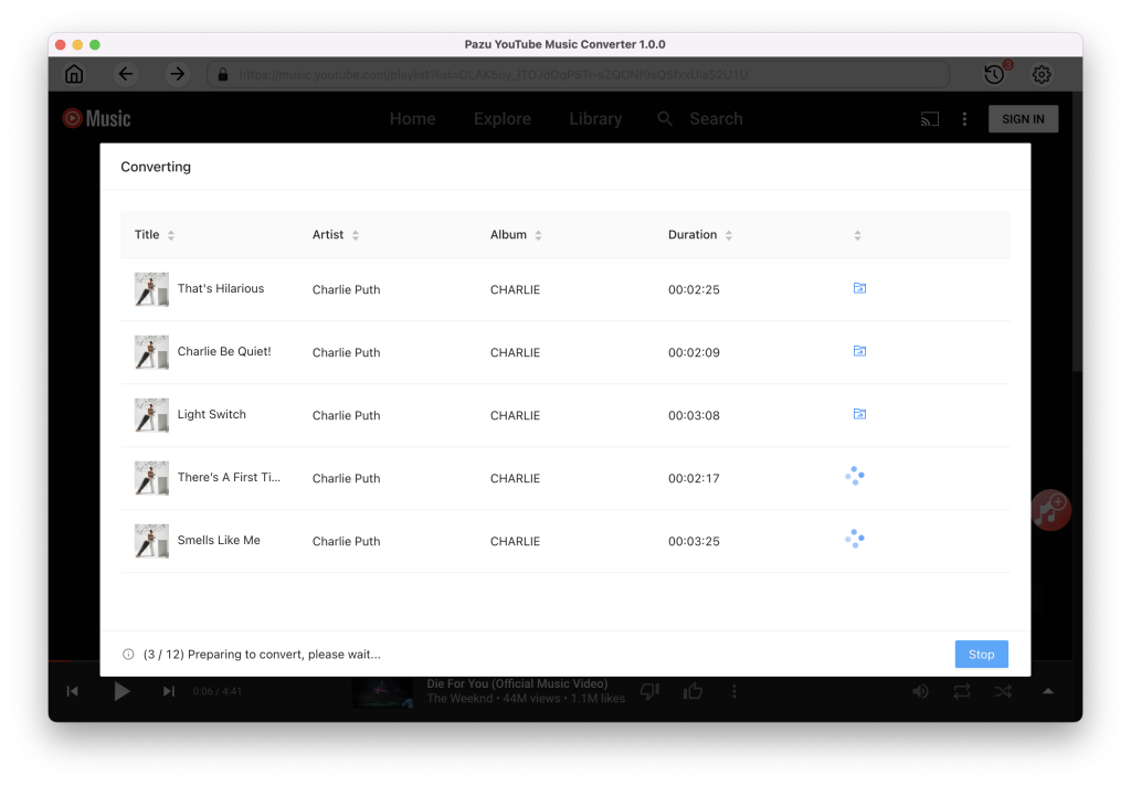 曲がダウンロードされたら、フォルダのアイコンをクリックして、選択した形式のDRMフリーのYouTube Musicの曲をすばやく見つけます。