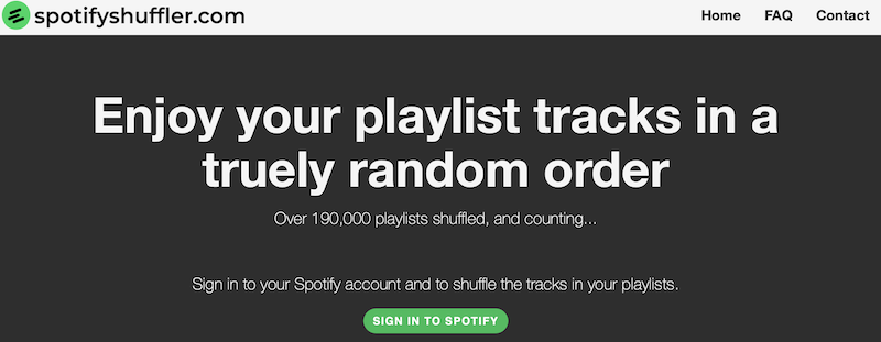 Spotify shufflerは、プレイリストの曲を本当にランダムな順番にすることができる無料のウェブサイトです。spotifyshuffler.comにアクセスし、Spotifyアカウントにサインインして、プレイリストを選択し、ランダム化するだけです。