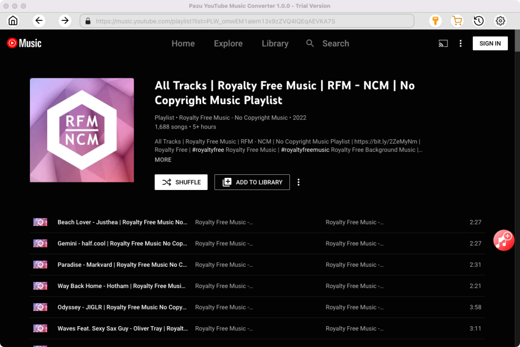 検索アイコンをクリックし、Royalty Free Musicと入力してください。プレイリストを開き、すべての曲を表示します。