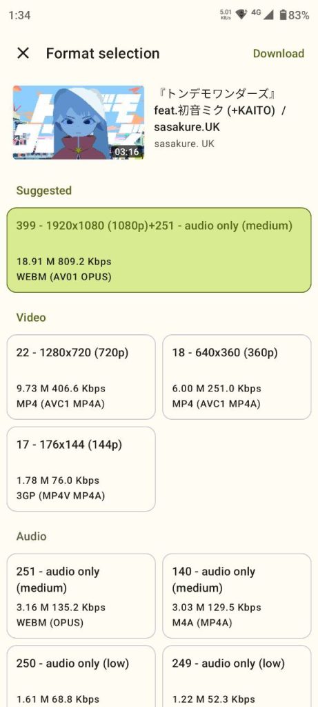 Seal is an open source video/audio downloader for Android that supports YouTube and many other website. It supports embedding metadata and video thumbnail into extracted audio files. Just enter the URL for content you want to download from YouTube and Seal will help you save the content as audio. You can use Seal to download all videos in the playlist with one click.