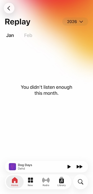 Tap “Your January Replay is here” (or the current month) to check whether you have listened to enough music for Relay. Once you’ve listened to enough music, you’ll receive a notification indicating that your Replay is ready.