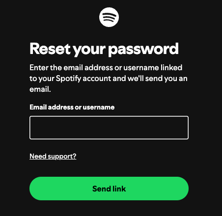 If you don’t remember your Spotify password, go to the password reset page on the Spotify website to create a new one.