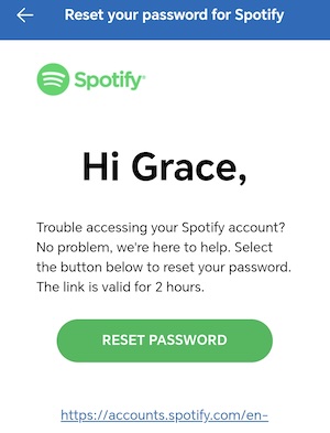 2. Find the “Reset Your Password for Spotify” email and click the “Reset password” button. Or copy the link to open it in your browser.