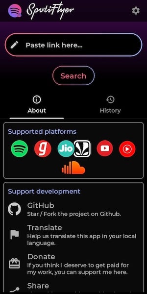 SpotiFlyer is a multiplatform music downloader supporting Spotify, Youtube, Gaana, Jio-Saavn, and SoundCloud. It can convert playlists, albums, and tracks to MP3 at a high 320kbps quality. The downloader could be run on Android, Windows, MacOS, Linux, and online.